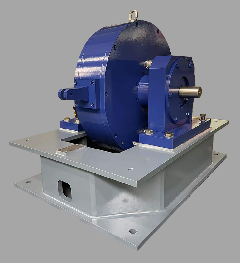 電渦流測功機主要由旋轉(zhuǎn)部分(感應盤)、外殼(電樞和勵磁部分)組成。當與轉(zhuǎn)子同軸裝配的勵磁線圈通直流電時,其產(chǎn)生的磁通經(jīng)電樞體、渦流環(huán)、氣隙和轉(zhuǎn)子形成閉合回路。由于轉(zhuǎn)子外圓面被制成有均勻分布的齒和槽,故在氣隙和電樞體或渦流環(huán)表面產(chǎn)生疏密相間的磁場,因此,轉(zhuǎn)子被拖動旋轉(zhuǎn)時,電樞體和渦流環(huán)內(nèi)表面上任何一點的磁場產(chǎn)生叫變變化,由此感應出“渦流”,由于“渦流”和磁場的耦合作用,在轉(zhuǎn)子上產(chǎn)生制動力矩,由于電樞體是通過機座固定在底板上的,故轉(zhuǎn)子無法帶動電樞體旋轉(zhuǎn),動力機械輸出的功率被轉(zhuǎn)化成電樞體和渦流環(huán)上“渦流”產(chǎn)生的等值熱量,該熱量由進入電樞體和渦流環(huán)冷卻水槽中持續(xù)不斷的冷卻水及渦流加載器自身消耗。